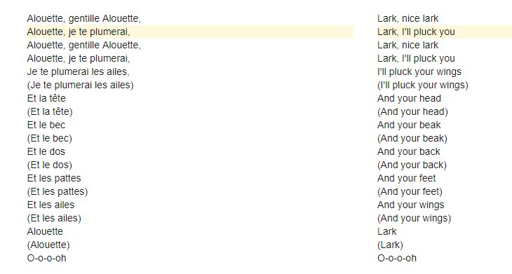 Related Terms : Alouette Gentille Alouette Meaning