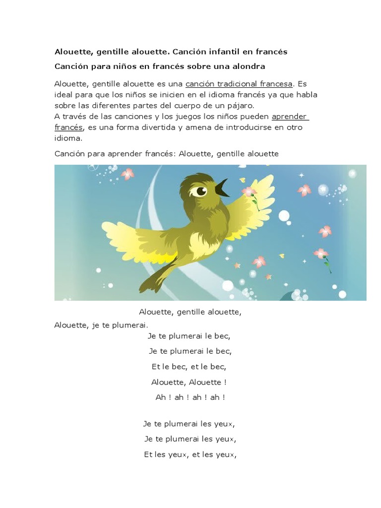 Related Terms : Alouette Gentille Alouette Testo