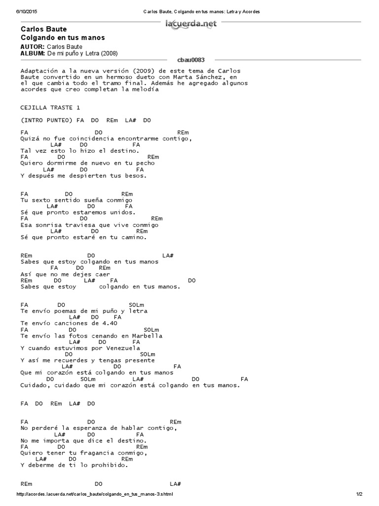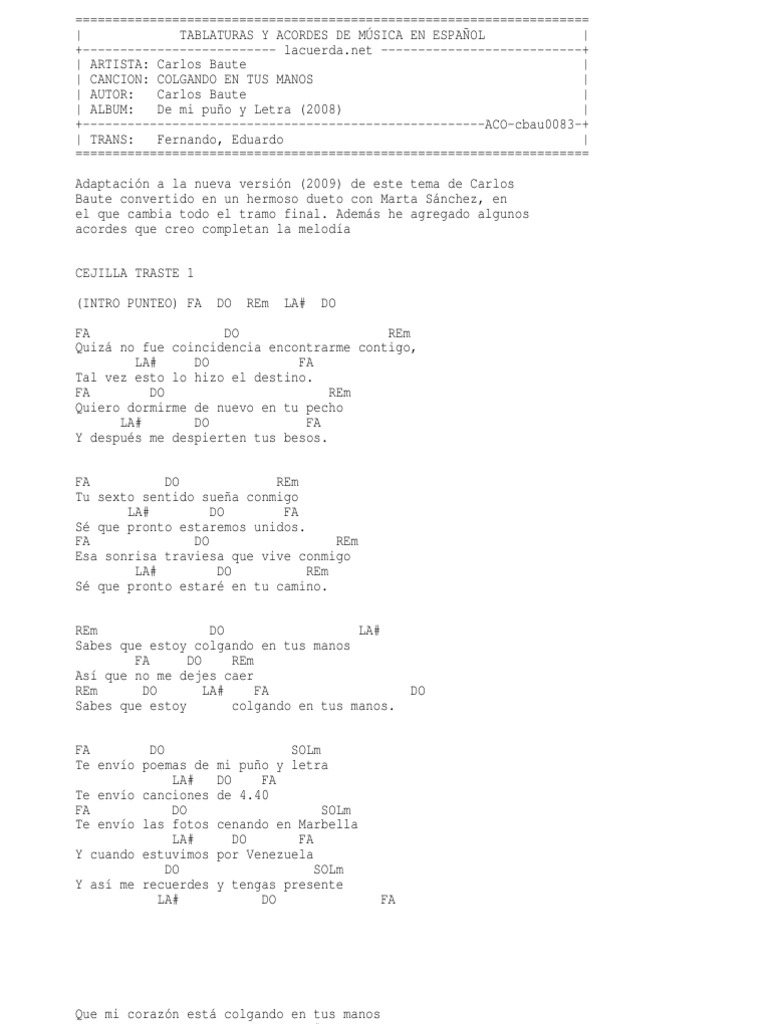 Related Terms : Colgando En Tus Manos Letra Y Acordes