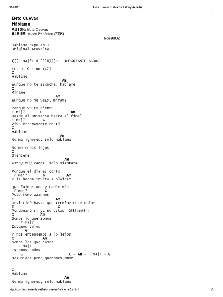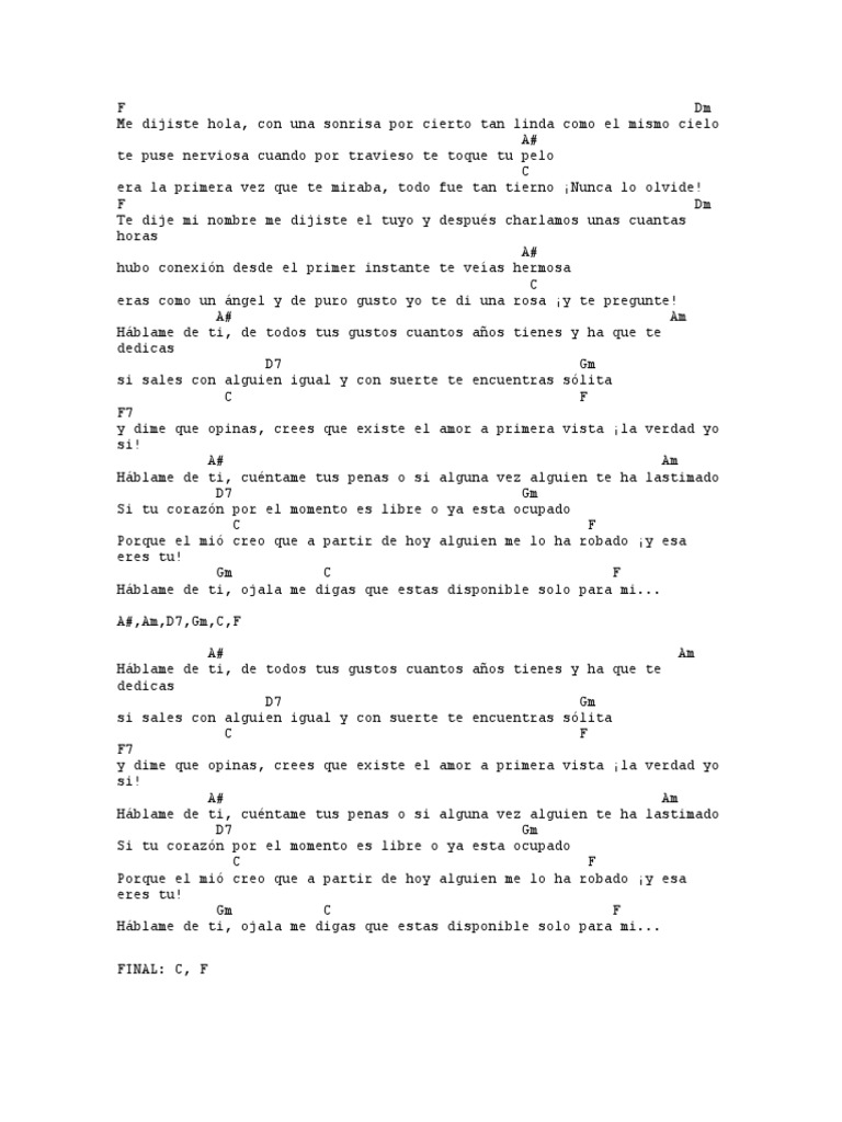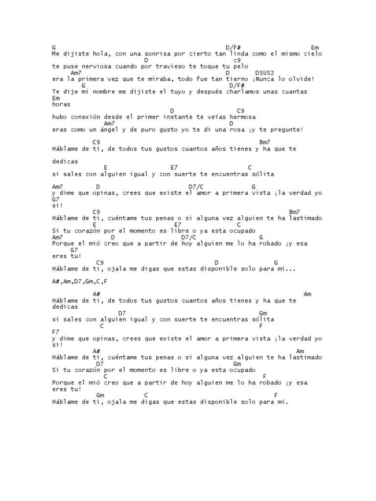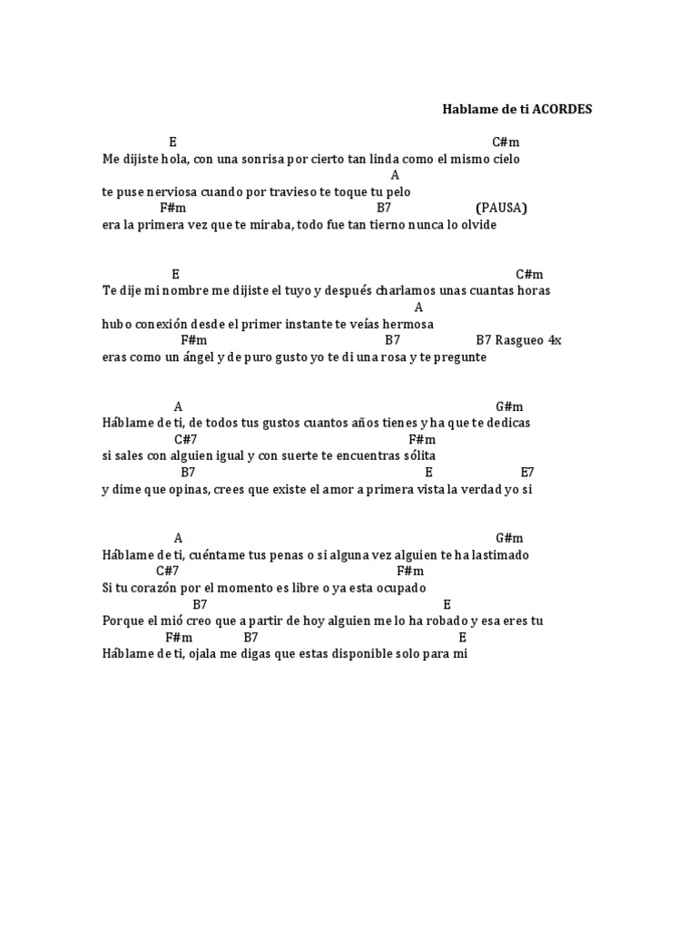 Related Terms : Hablame De Ti Letra Y Acordes