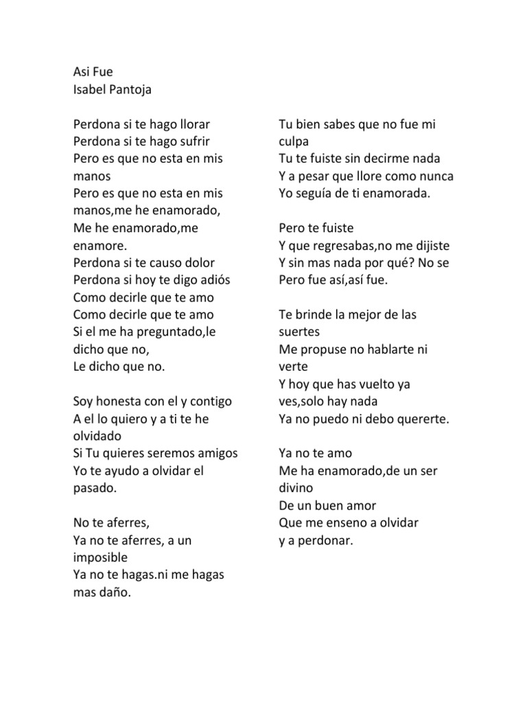 Related Terms : Isabel Pantoja Asi Fue Lyrics