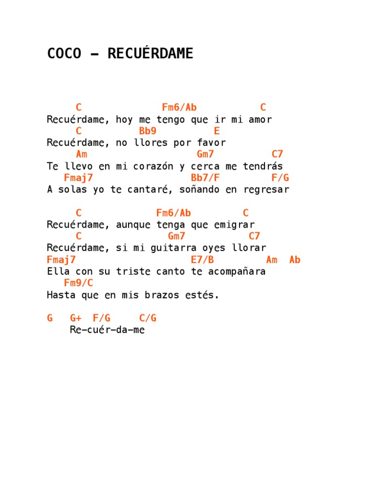 Coco Recuerdame Ukelele Canciones De Ukelele Canciones De Guitarra Letras Y Acordes