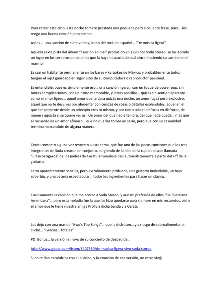 Related Terms : Soda Stereo Musica Ligera Letra