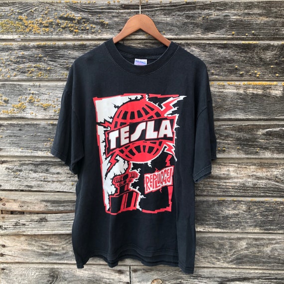 Rare Vintage 80s Tesla Band T Shirt Both Side Print Tesla Etsy