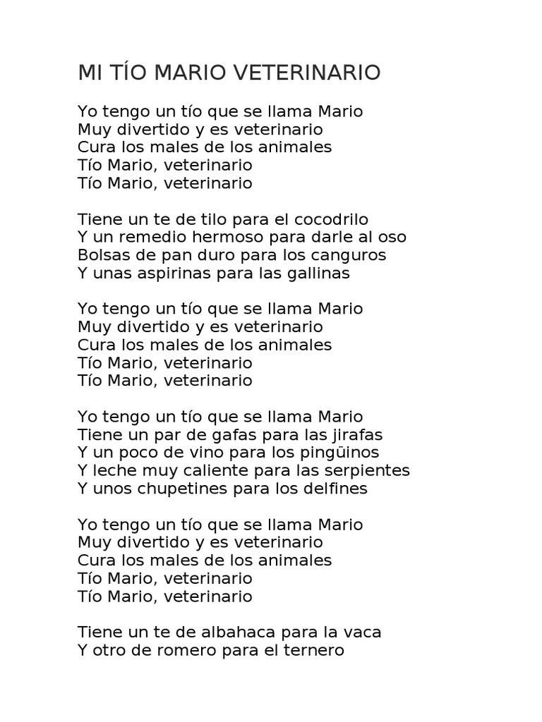 Mi Tio Mario Veterinario Letra Topa Musica Com